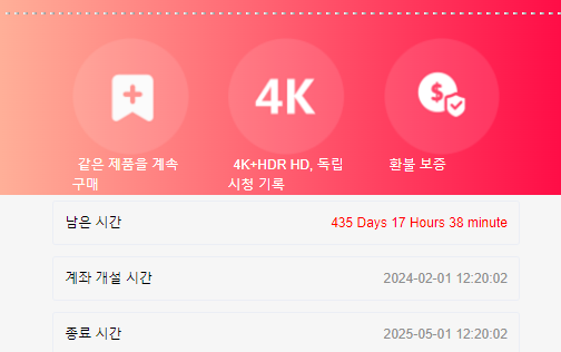 | 기간 | 3개월 | 6개월 | 12개월 | 24개월 |