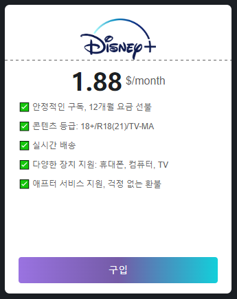 위의 표와 같이 엄청나게 싸게 구독할 수 있습니다. 이게 가능한 이유는 가족요금제로 묶어 구독 서비스를 저렴하게 이용할 수 있게 하기 때문입니다. 아쉽게 국내에 지원되지 않는 요금제지만 해외사이트를 통해 싸게 구독하고 해외사이트는 수수료를 가져가는거죠. 물론 수수료 붙인 금액이 위의 금액들입니다.